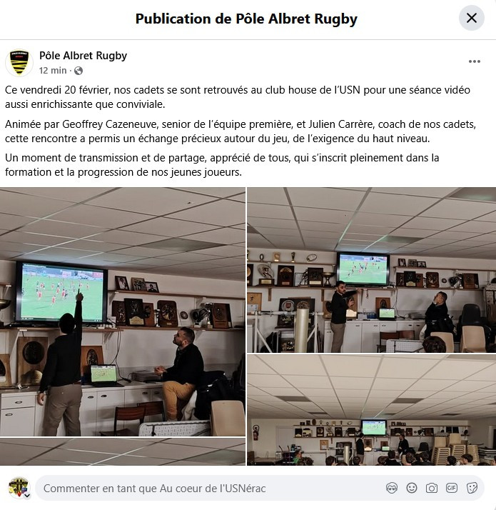 Ce vendredi 20 février, nos cadets se sont retrouvés au club house de l’USN pour une séance vidéo aussi enrichissante que conviviale.
